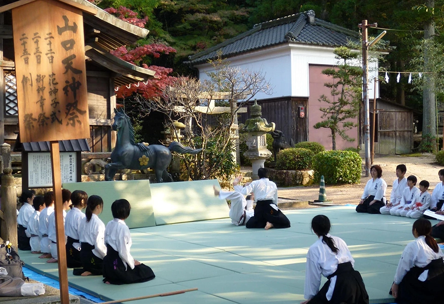 前日の22日には大祭の無事を祈る花神子式(はなみこしき)が執り行われます。また当日23日の午前中には奉納行事として市内小中学生による、剣道大会、相撲大会が行われ、境内は次第に活気づきます。
