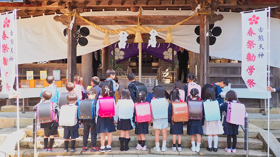 年間を通してさまざまな祭事が斎行される古熊神社ですが、毎年4月の第1日曜日には小学生新入学児童の学業成就を願う『春祭・勧学祭』が斎行されます。市内外からピッカピカのランドセルを背負った新入生が参拝し、境内には家族の暖かな眼差しとともに希望に満ちたひとときが訪れます。文/邦馬