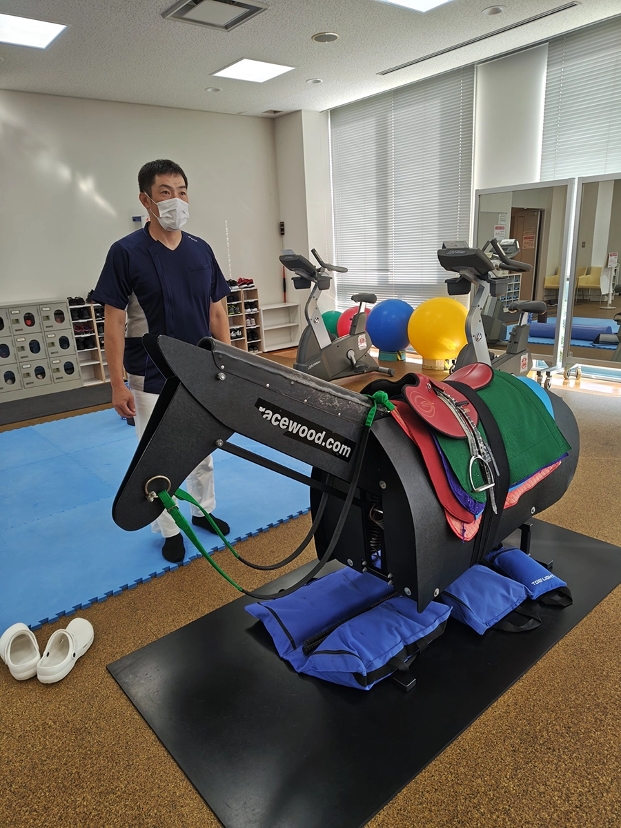 騎手などが練習用として使う乗馬マシーンが設置されているのも、この競馬社会の診療所ならではのものだ。