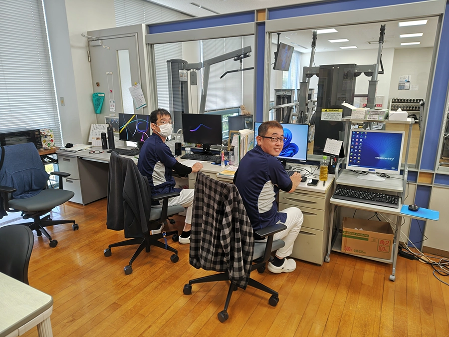 リハビリルームには、理学療法士の久田先生、石崎先生、細井先生の3人の理学療法士の先生が常勤されていて、最新の知識に基づいての適切な施術と、トレーニング方法やマシーンなどの使い方をしっかり教えてくれる。
