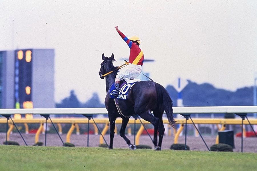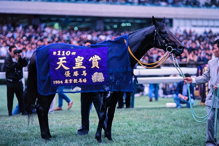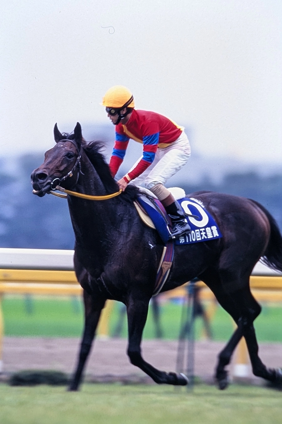 この1週間後に開催された菊花賞で7馬身差をつけて完勝し、三冠馬に輝いたビワハヤヒデの弟・ナリタブライアン。