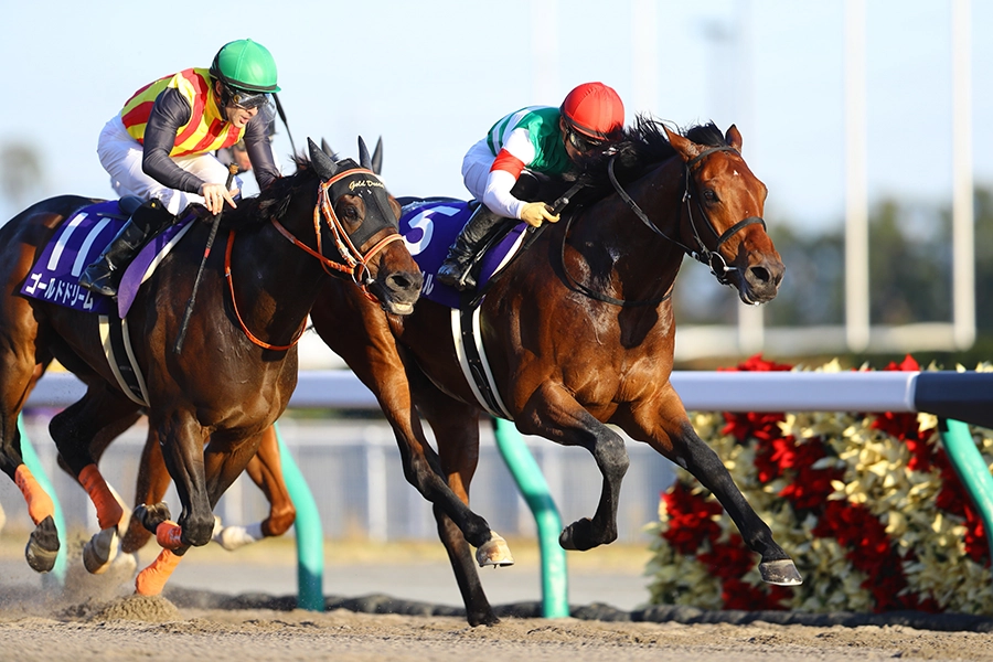 中京競馬場のチャンピオンズカップ時のウインニングラン、天気が良いとド逆光で露出が難しいと嘆くカメラマンも多い。