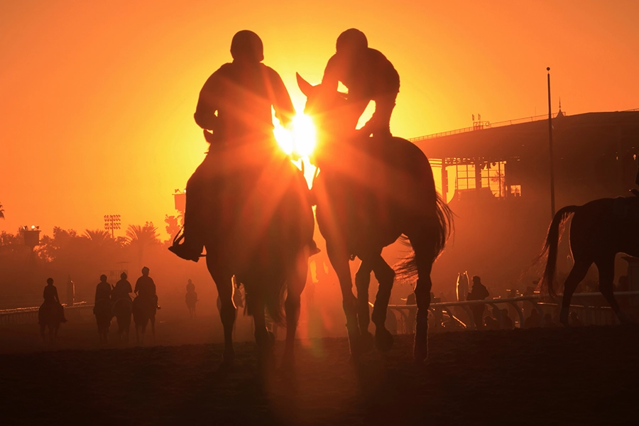 2023年のブリーダーズカップ開催の撮影に出向いた時に撮影。朝の調教時に1コーナーから太陽が顔を出した。