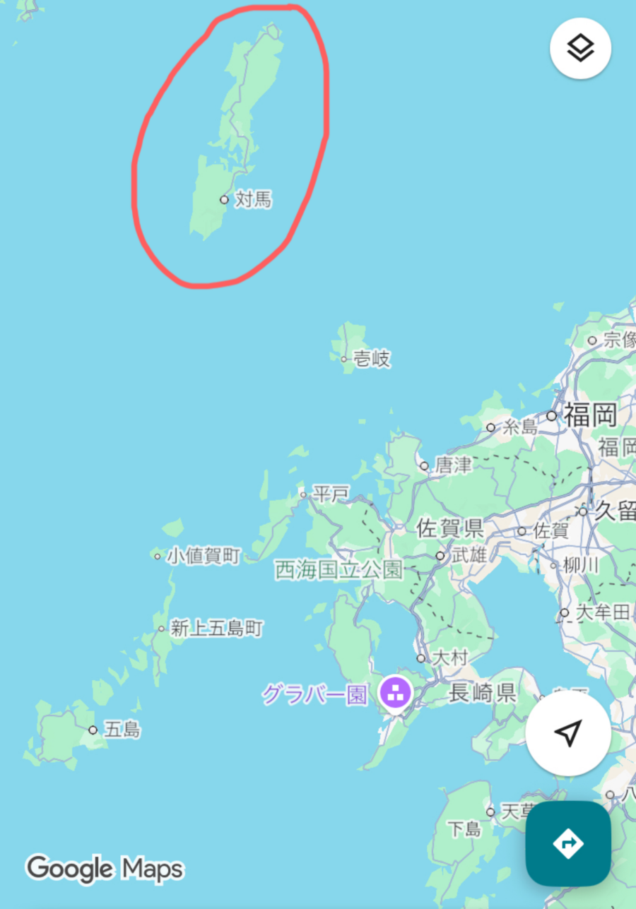 ちなみに長崎県の対馬市ってどこだろう?って調べたら、離島でした🏝️