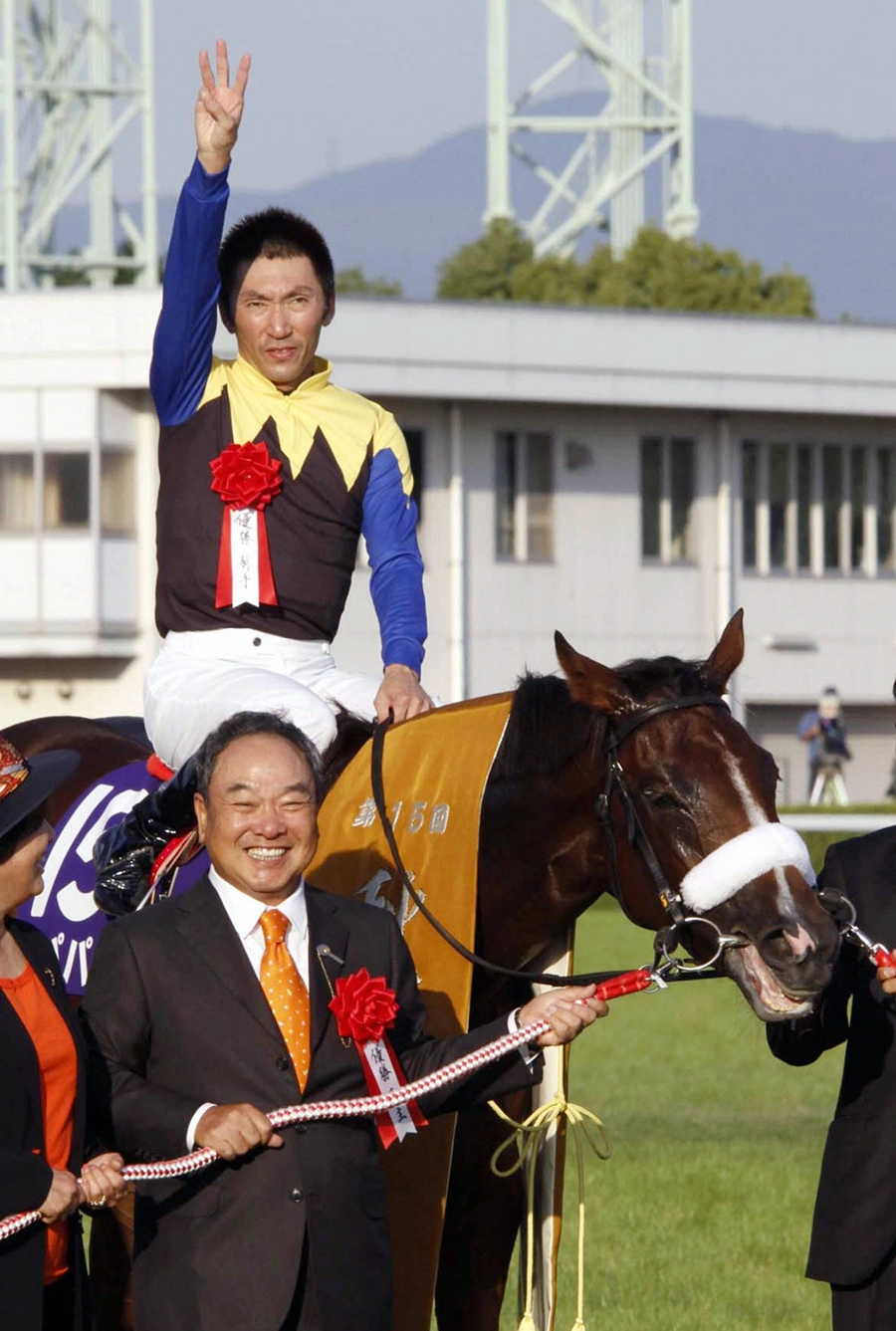 残り150メートルで、もう先頭。アニメイトバイオがいい勢いで迫ったが、アパパネ・蛯名正義騎手(引退)の手応えには余裕があった。4分の3馬身差だが、着差以上の完勝で3冠を手にした。
