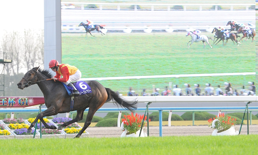 エリザベス女王杯といえば、10、11年連覇の英国馬スノーフェアリーである。赤と黄色の勝負服は紅葉を思わせ、京都によく似合った。