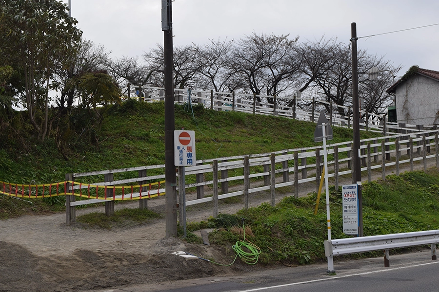 さまざまなことを思いながら、専用馬道を併設した歩道を戻る。木曽川沿いの土手に到着した。馬だけが登ることができる坂道が見えた。鉄道でいえばスイッチバック式だ。